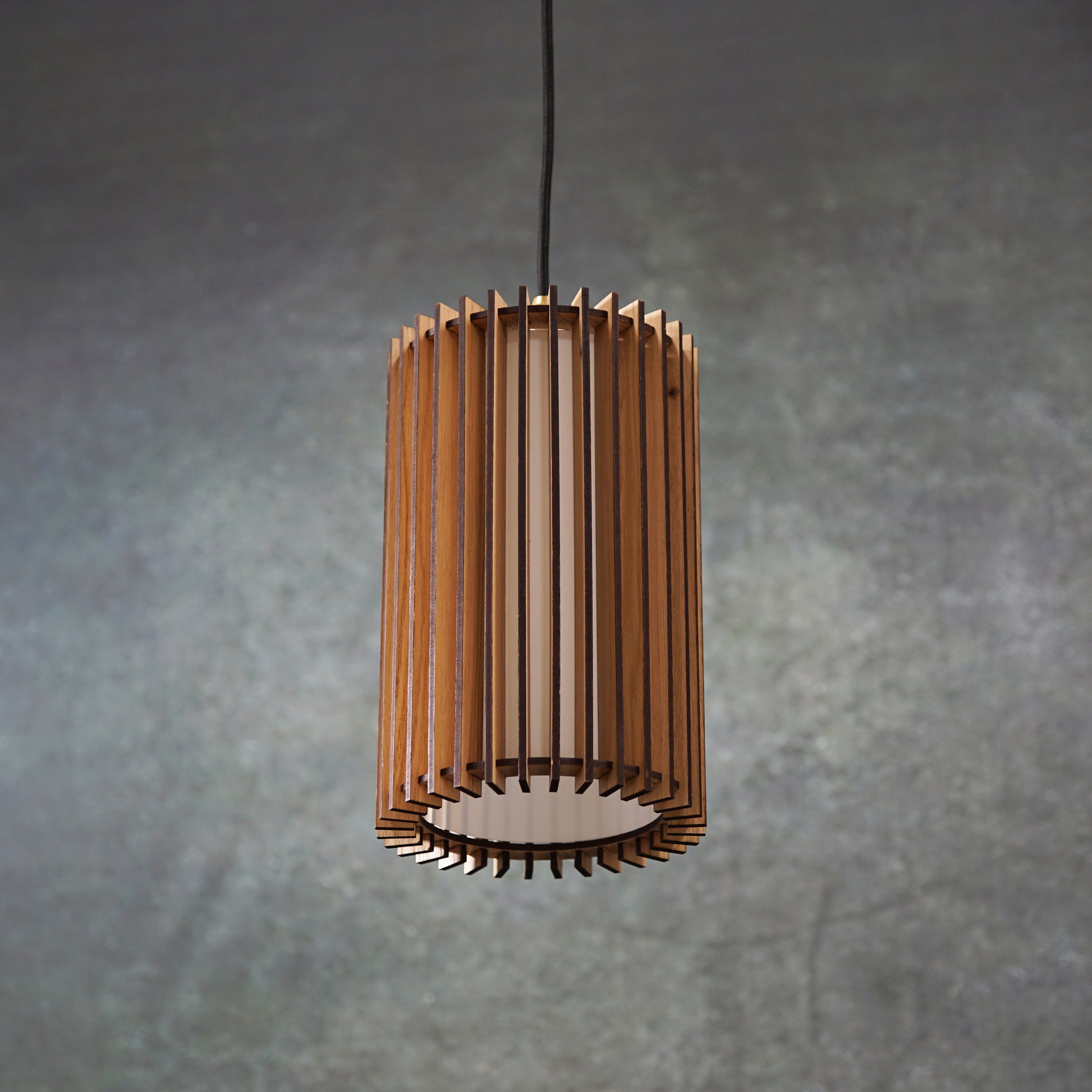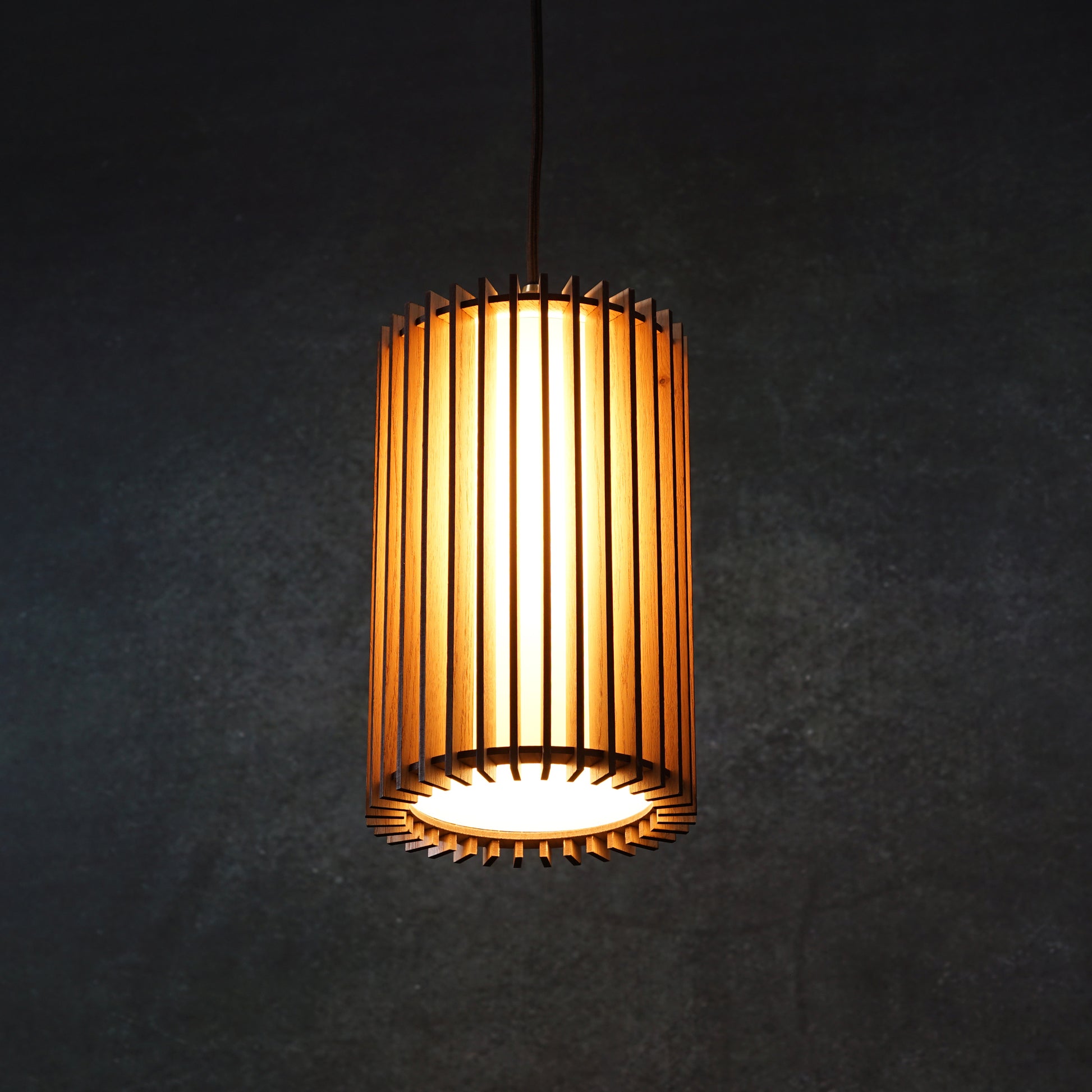 By increasing the quantity of vertical fins in the lampshade beyond that which is structurally required the result is powerful with slits of light escaping from the sides and a warm glow from its base.